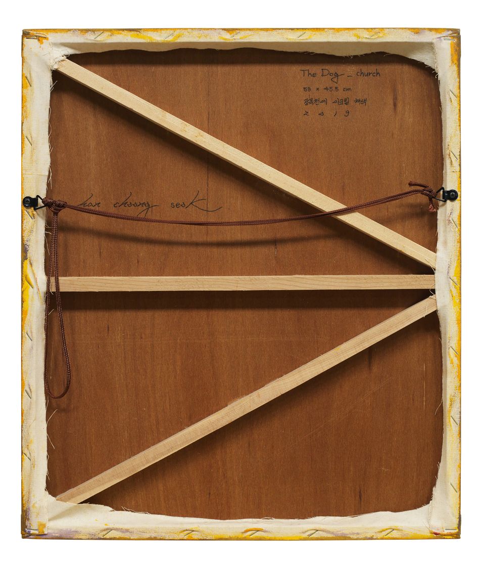 簽名題識畫背:han choong seok The Dog - Church 53x45.5cm 광목천에 아크릴 채색 2019
