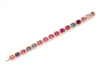 A MULTI-COLORED SPINEL AND DIAMOND BRACELET