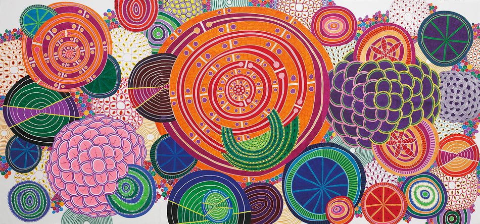 「原生的律動」是藝術家對於自然環境的觀察與關懷,轉化為探尋自身內在精神之系列。畫面中的圓型圖案亦有「原形」之意,藉由延展、重疊與再生來表示社會個體之於母體環境是共生共存、相互滋長。長形大尺幅畫作是數萬隻原子筆緩緩刻劃中思量出的哲理,亦是曾雍甯一路走來對生命認知的成長。