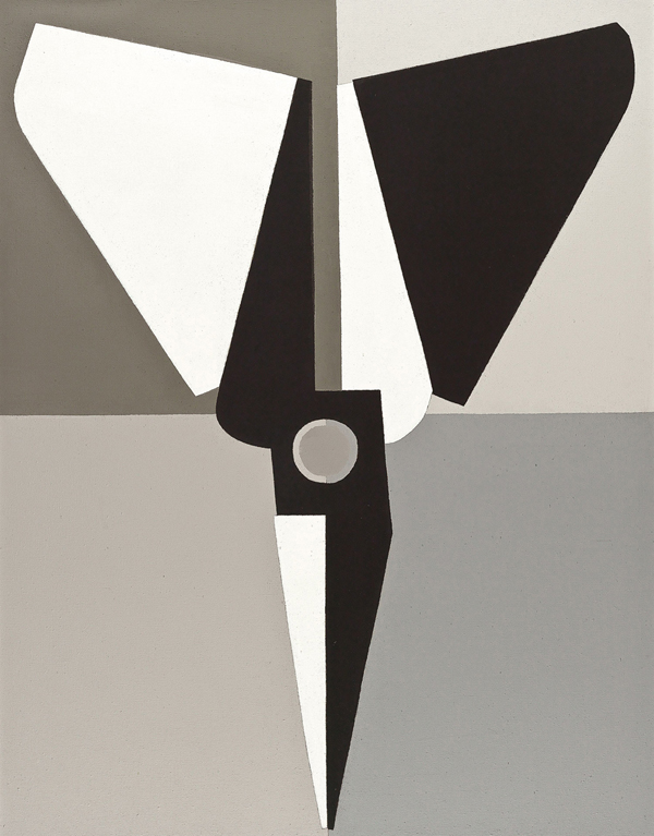 A pair of scissor has become synonymous with Mao Xuhui and the most recognizable symbol in his paintings, almost as if he were the creator. Often referred to as the "scissor-painter", Mao first began to paint scissors after a serious illness in the early 1990s. Alone and isolated in hospital, he was surrounded only by ordinary and mundane objects such as scissors. Slowly his mind became engaged with the ordinary and mundane and he saw new and extraordinary possibilities and meaning in the everyday. Rather than present everyday objects in a realistic way, Mao chose an artistic language of graphical representation. His series of works with scissors or chairs evoke a strong psychological reaction as they play with such themes as social power and the inner-mind. Believing that "works with vivid imagery have greater impact on people", Mao uses chairs as symbols of social power, while scissors represent psychological states. Each pair of sharp scissors is open or closed, complete or broken; and each position represents a calm yet undetermined and restless emotion immediately picked up by the viewer.