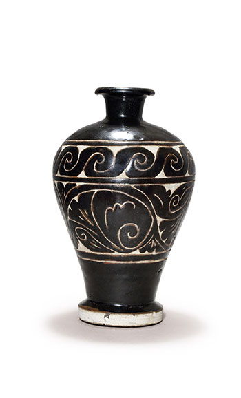 A RARE CIZHOU BLACK GLAZED CARVED MEIPING VASE Jin Dynasty (AD1115-1234)