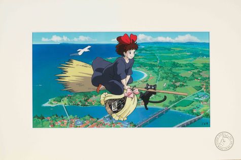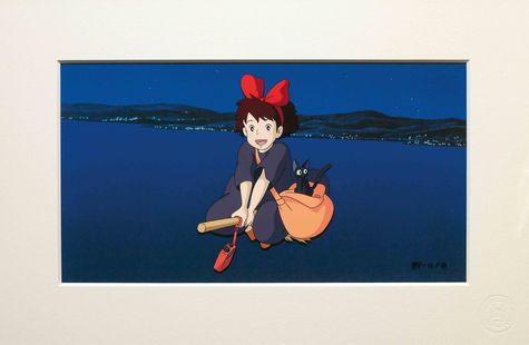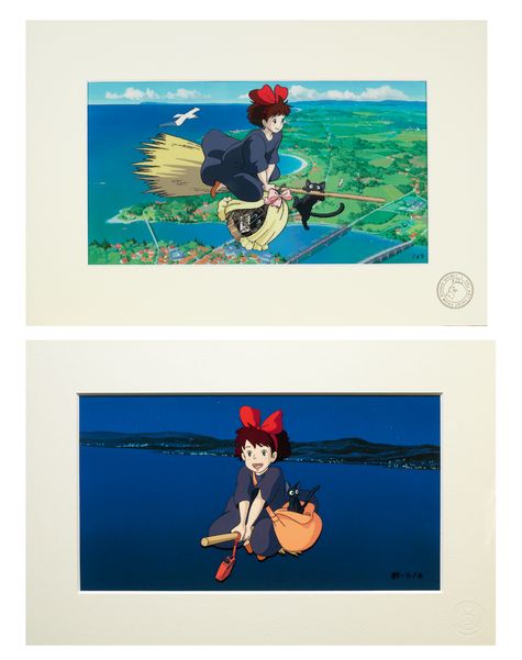 Hand painted cel; cel art print, edition no. 169 (Kiki’s Delivery Service) Hand painted cel; cel art print XIV 10/20 (Fly in Night)