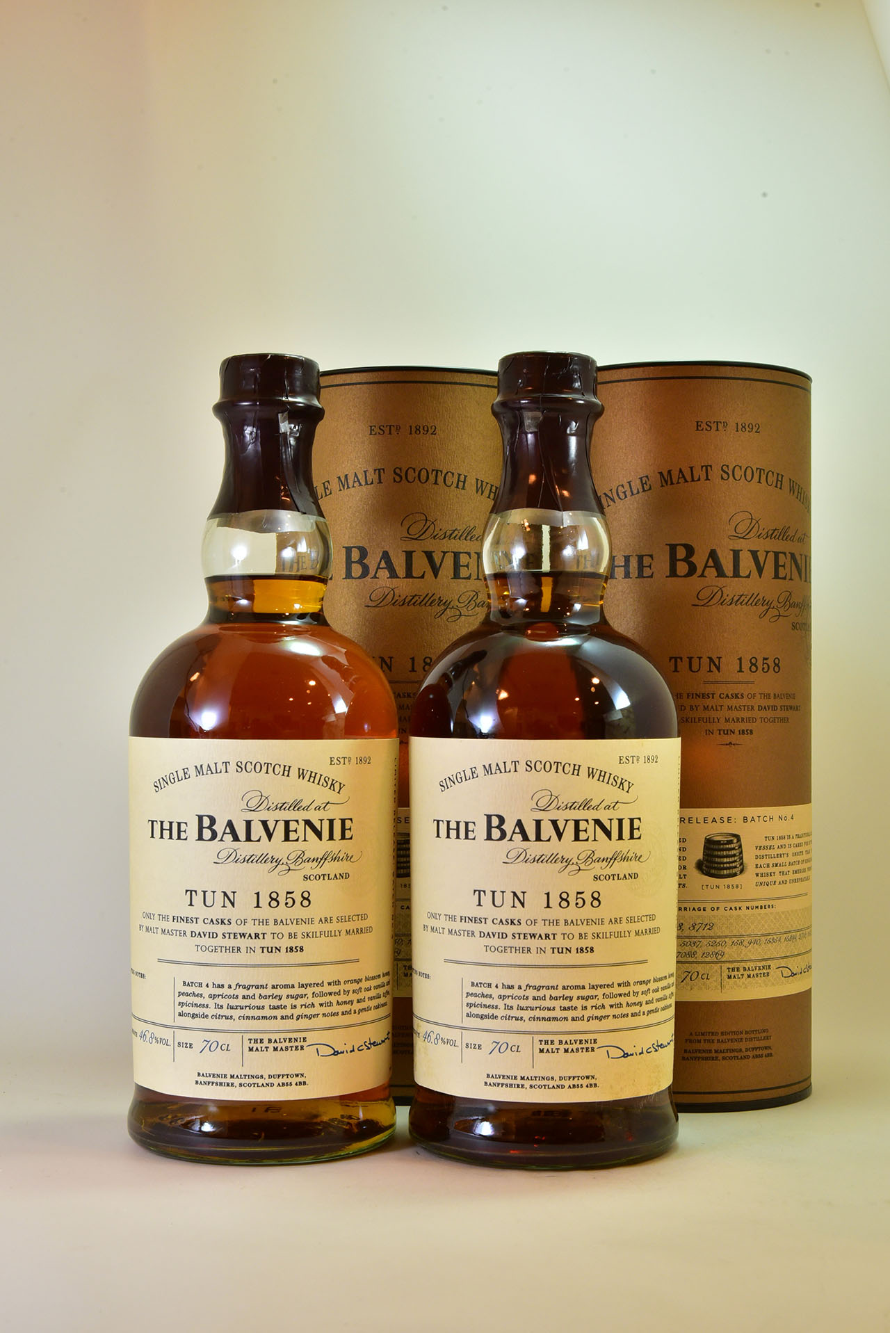 繼「Tun 1401」,百富同樣運用源自蘇格蘭幾近失傳的古老造酒工法「Marry」,於2013年開始推出以更高年份調合而成的「Tun 1858」系列,將數個高年份的酒桶裝進更大的酒桶,經過一段時間的陳放融合,一方面保有老酒的圓潤口感,同時激發出更複雜的層次感,工法繁雜,需要調酒師絕對精準的感官。其中,Batch 4於2015年7月推出,勾兌了2個歐洲橡木桶與12個波本桶,僅管雪莉桶比重不高,卻仍有著雪莉華麗的水果調性。Tun 1858限定台灣市場販售,在歐洲拍賣市場上極受矚目。