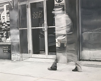此幅作品創作於1973年,也正值普普藝術在美國流行期間,同時推動了美國照相寫實繪畫,在這場前衛藝術運動中,夏陽也成為紐約照相寫實主義的代表人物。作品用其獨創自由繪畫的方式,潛心規劃出畫面構圖,靈感又不由自主地意隨心動,任由神來之筆揮灑自如,畫意就此落落而生。畫面定格在一瞬間的「當下」而這個「當下」無關乎實際的時長或短,端倪源於此刻的行走。而這個被定格的行走,不受時空羈絆,可以是以往的過去,可以是此刻的當下,更可以是將至的未來。夏陽的藝術向來是用極具張力和想像力來表現出自然靈動的繪畫語言,將自己的體悟隨性運用,才可創作出這樣的優秀作品。