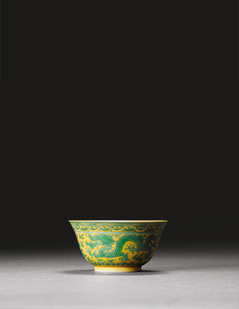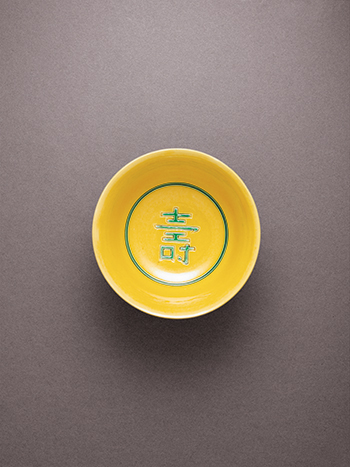清道光 黃地綠彩龍紋壽字碗