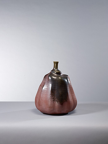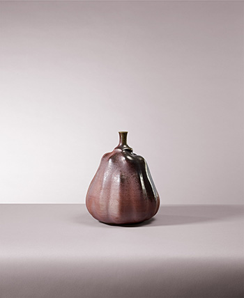 此次拍品《南瓜系列—南瓜细颈瓶》以极为高难度的拉坏技术在辘轳上一次成型,创作者选择为期八个工作天烧制后,再待一周冷却,以最为费时、费神,最耗费体力的柴烧方式成现。而此次细颈小口瓶之造形,也是在烧制过程中失败率最高之型体,实为不易!