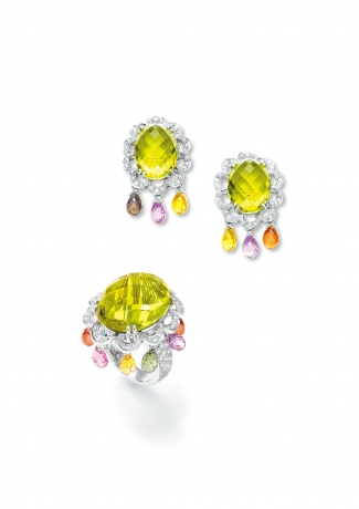 檸檬水晶, 彩色藍寶石與鑽石戒指及耳針套裝