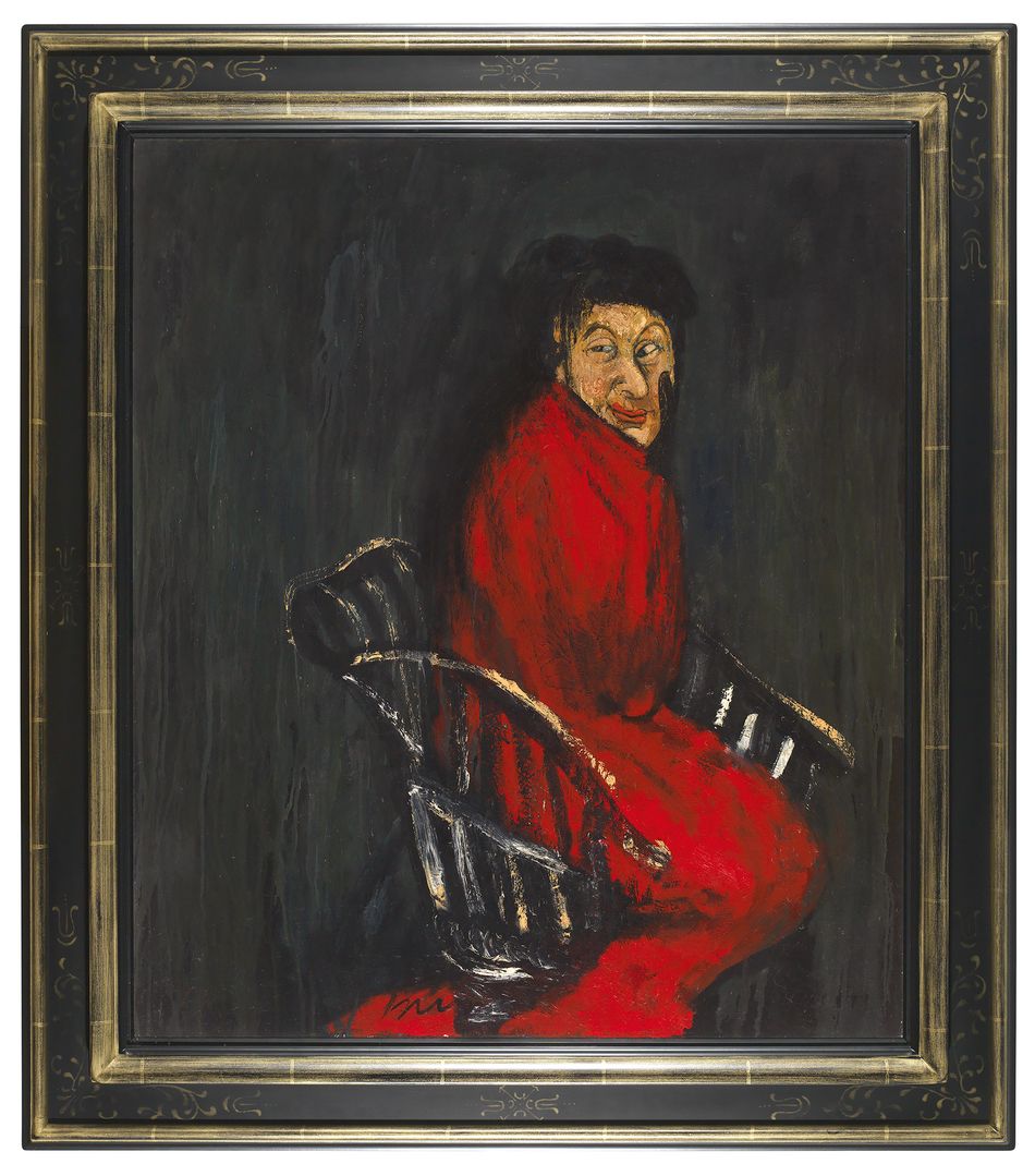 In 2019, an exhibition "Lifetime Colon - Chiu Ya-tsai Retrospective" was held for Chiu at the Yilan Museum of Art in his hometown, to commemorate the legendary portrait painter in the history of Taiwanese art. "Lifetime Colon" is not only a title of one of the novels published by Chiu, but also the tortuous experience of twists and turns in his life, his vigorous creativity, to narrate the depressing life that needs to be relieved and redeemed through painting. This exhibition is Chiu's largest retrospective since his death. Chen Kuang-Yi, the curator of this retrospective exhibition, mentioned: "Different from everyone's perception that the characters in Qiu's paintings are always elegant, restrained and quiet, he did paint many crazy or ridiculous figures with wild brushwork and exaggerated expressions." In the book "Portrait.Life.Chiu Ya-tsai" (2021). "Figure in Red Dress" indeed is a representative work of the artist. The unique and expressive expressions of the character in the painting brilliantly convey the wandering and mysterious nature of human beings. In addition, the large black background contrasts with the sitting figure in red dress in the foreground, which is reminiscent of Francis Bacon's "Study of Red Pope" reinterpreting the "Pope Innocent X" series by Diego Velázquez. Chiu no doubt paid tribute to the two outstanding portrait painters in the history of art, sublimating the inner spiritual qualities of the characters in the portraits.