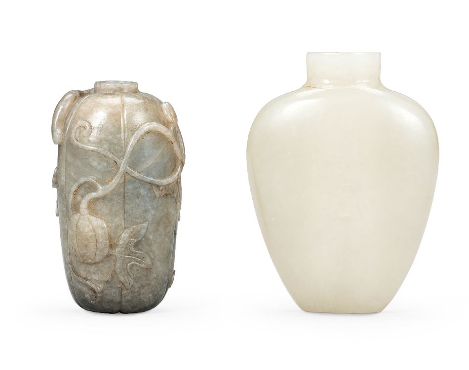 清 白玉素面鼻煙壺及青白玉瓜瓞綿綿鼻煙壺
