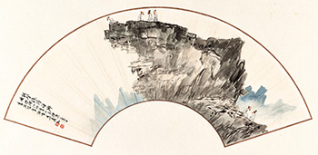 1983設色 紙本15 x 51.2 cm款識 :誠登絕頂望鄉國 江南江北青山多癸亥夏日畫於笛音凝室 李義弘鈐印:李義弘記 在川