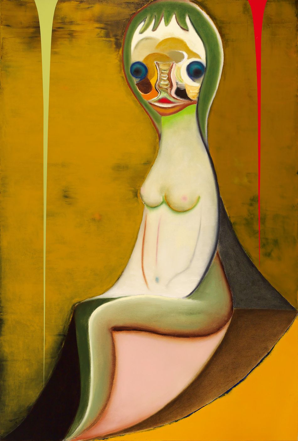 「繪畫應該像小朋友那樣隨意揮筆」加藤泉曾這樣描述,他喜歡古物,也喜歡逛博物館,尤其鍾情日本繩文時代的雕像固使加藤泉的作品特徵鮮明,時而雌雄同體、四肢纖長且姿態詭譎,彷若植物屬性卻又帶著動物般豐沛的生命力生長於土地的原始力量。《無題》於2016所創作,描繪一個女性形象的原生生物,圓潤的身軀及雙眼與日本史前繩文時代在巫祭儀式中代表生育的「土偶」相似。粗曠、原始有如充滿生命力的原生藝。怪誕且脫俗,亦表現出他對人類形象高度風格化的處理,使觀者面對藝術家於自然萬物的獨特詮釋,似人似神既親切又陌生的創作,嚴肅、靜謐卻充滿旺盛生命力。