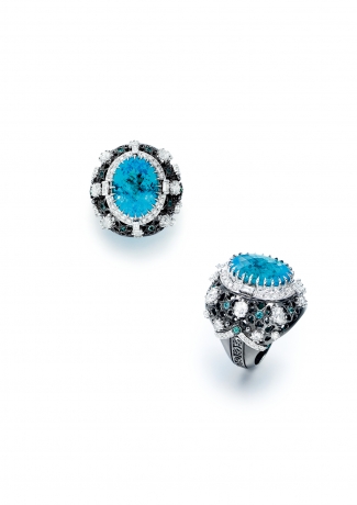 A RARE PARAÍBA TOURMALINE AND DIAMOND RING, BY DILYS