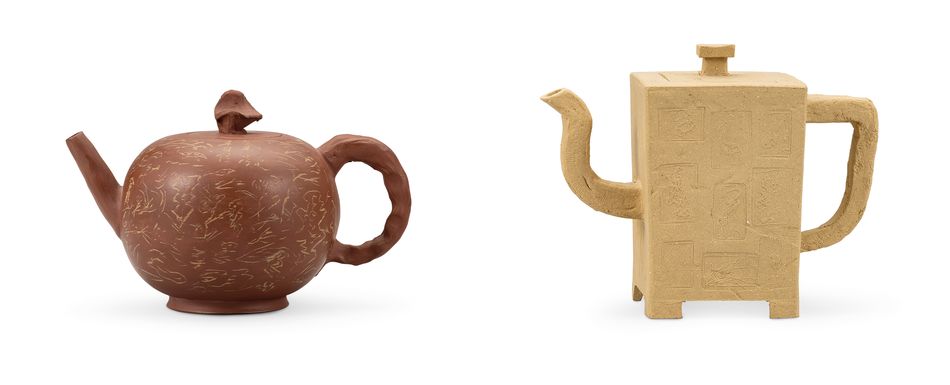 「氣凝香注」手作宜興壺《于彭監製》、《彩萍製陶》款及「清奇古怪」手作宜興壺《于彭監製》、《董國峰製》款(兩件一組)