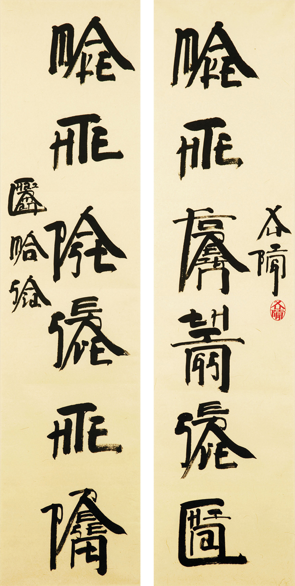 徐冰做作品的態度已經到了「較真」的程度。但是嚴謹的藝術語言中,又時常帶有童趣的幽默。一副字跡工整,對仗貌似傳統中國古代的對聯,竟然是用英文單詞拼寫而成。他認為藝術的本質就是語言:「我總想藝術家,他最終的本事還是在於,你必須把你的思想,用一種前所未有的,而且是具體的語彙表達出來。藝術家都必須是思維能力很強的人。但所有嚴肅的藝術史都是記載在藝術語言上有貢獻的人。」〈胡赳赳對話徐冰,2010年1月30日〉