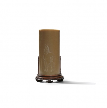 QING DYNASTYOf long rectangular form, the convex side is decorated with a recumbent horse.H 23.5 cm, stand.