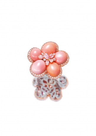 天然海螺珍珠,粉紅鑽石與鑽石戒指