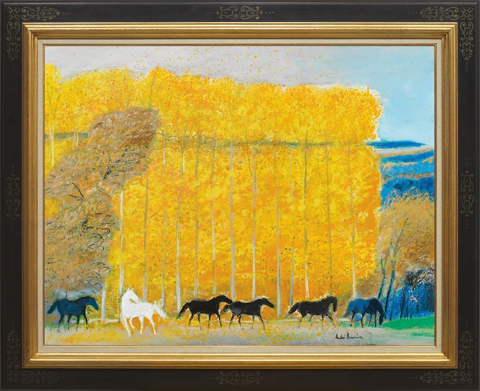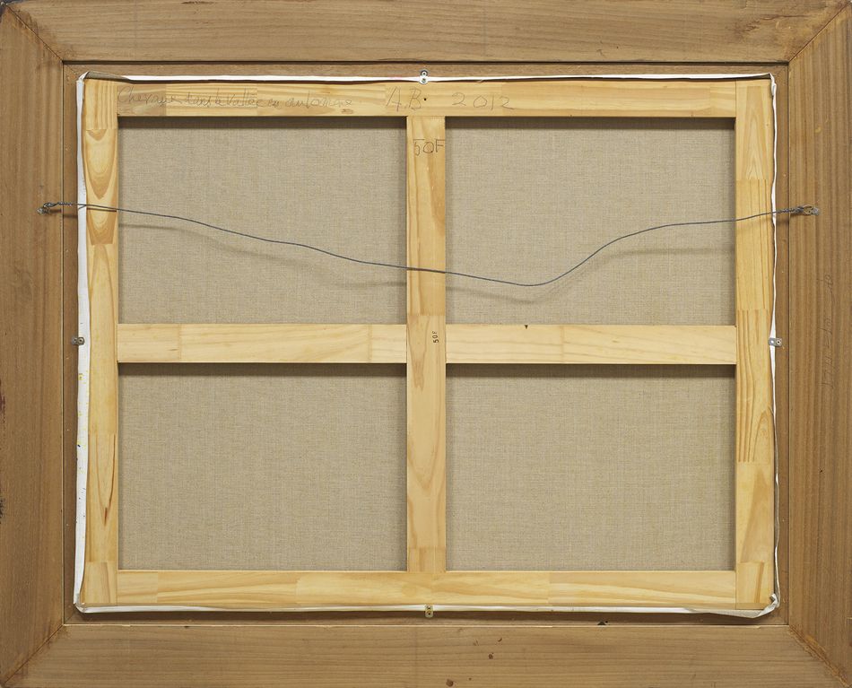 簽名題識畫背框條:Chevaux dans la Vallé en automne A.B. 2012 50F