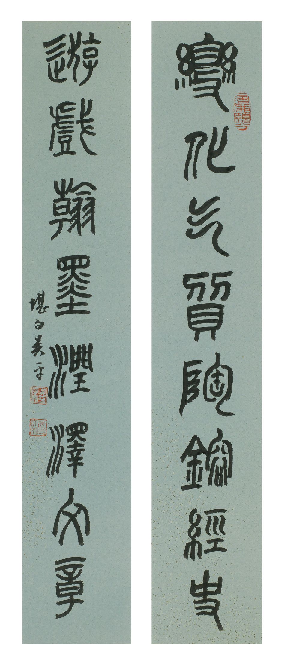 鈐印:適我願兮(朱文)、吳平長壽(白文)、堪白大年(朱文)