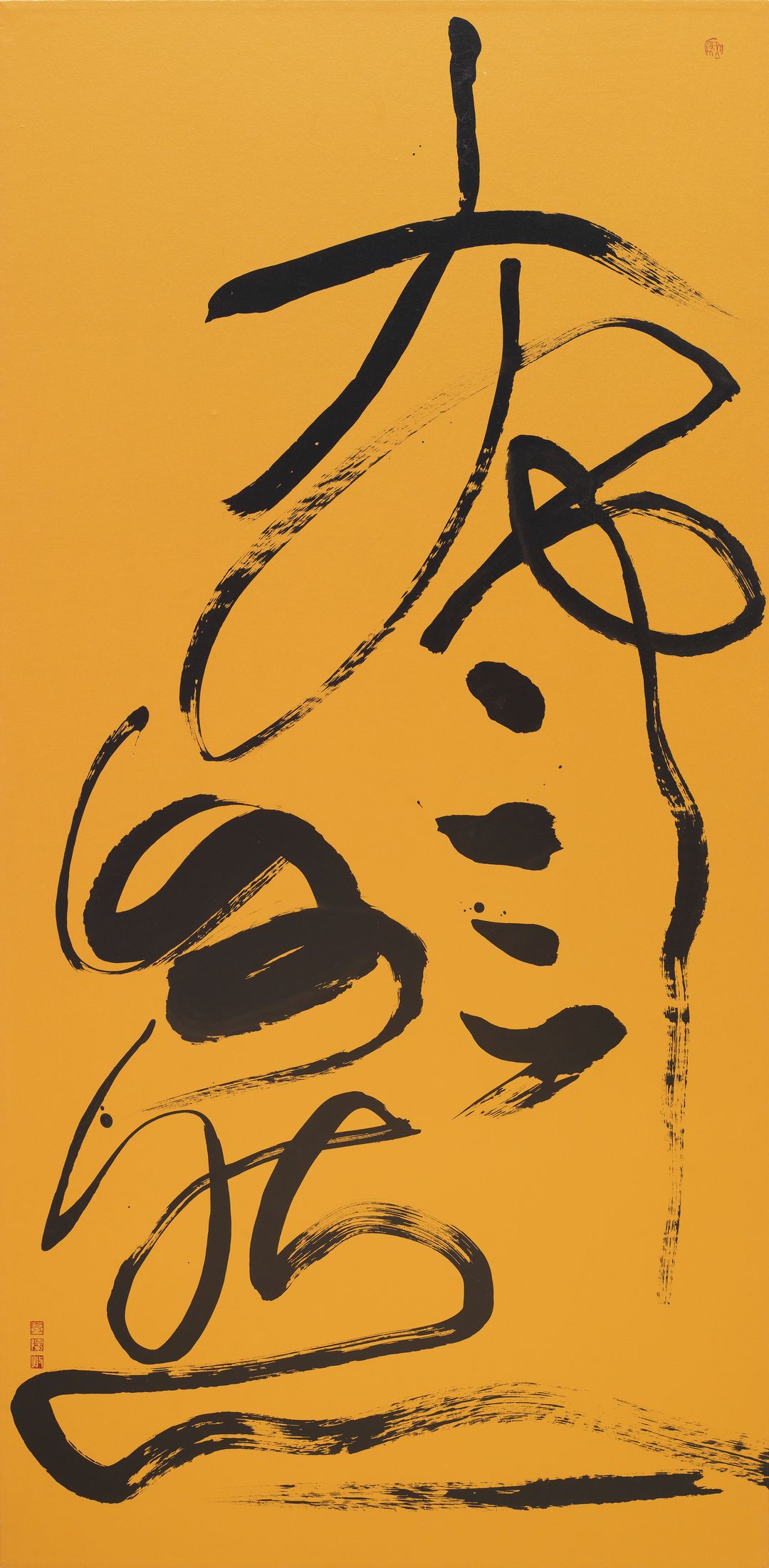 TONG Yang-tze, To Speak Few Words: That is in Accordance with Nature., 2008, Ink on gold-coated paper, 138 x 69 cm