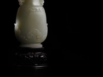 比对:是件盖瓶的造型风格隐隐具有痕都斯坦的风韵,或是以痕都斯坦的盖瓶加入中原装饰元素而完成的一件特殊盖瓶。风格雷同的痕都斯坦盖瓶北京故宫博物院藏有一件清〈青玉嵌金缠枝花纹瓶〉可供参考,详见:张广文主编,《玉器》(下),上海:上海科学技术出版社,2008年,页308。
