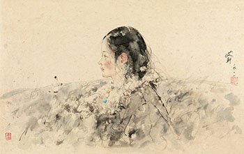 艾轩,中国知名诗人艾青之子。青年时期因为曾经被派遣至西藏军区服役,后来的作品题材几乎全部取材自西藏,描写西藏的山水人物。而其足迹也深入藏区,从1974年来几乎每年都在藏北地区,寻找他画笔下独特的西藏风情和人物。当面对天地间的浩瀚无垠,内心受到极大的震撼,置身皑皑白雪的荒原里,感受的静默与孤寂,自然大地的圣洁伟大,令他由衷感动,转而发抒于绘画之中。本件作品创作于2011年的作品,属于艾轩纸上作品中的早期精品,笔触尤为细腻而富有感情,也是2013年艾轩第一次纸上作品个展中的代表作。