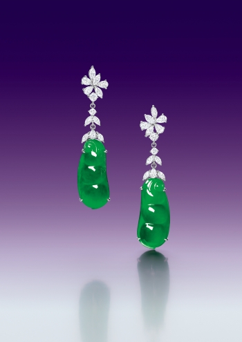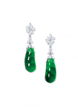 缅甸天然翡翠福豆与钻石耳坠